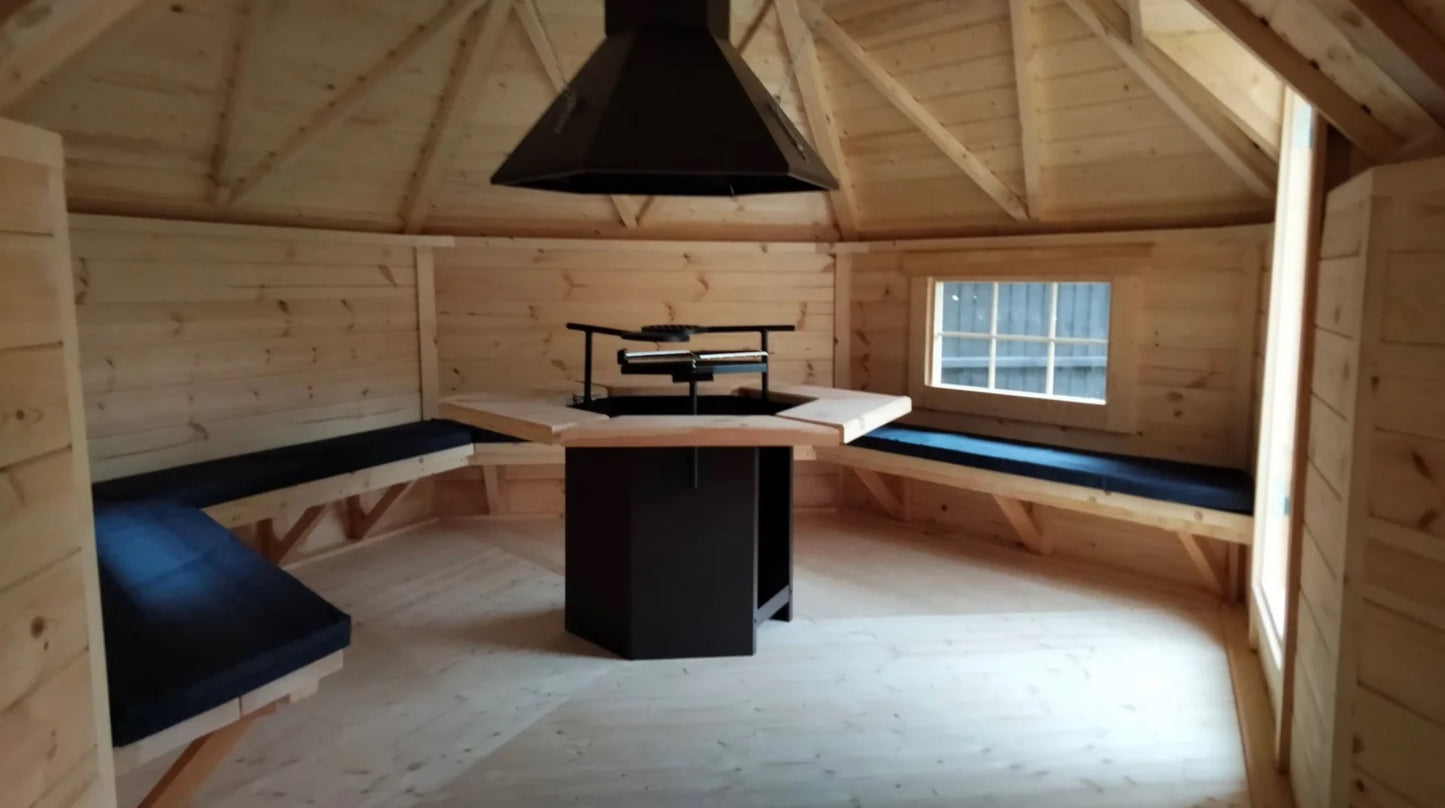 The 9.2 m² Grill Cabin with 1.8 m Extension – Expanded Outdoor Haven combines all the features of a traditional grill cabin with an additional 1.8 m of space, creating a larger, more versatile layout for up to 10–15 people. This extended cabin offers extra room for social gatherings, dining, or relaxing, all centred around a built-in BBQ grill. Made from premium pinewood with options to customize colours, this cabin provides a year-round retreat in any garden, park, or backyard.